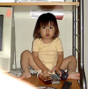 最近、日南子は妙な遊びをする。目をぎゅっとつぶって歩くのだ。あきらかにスリルを楽しんでいるかんじで、口は笑っている。時には目を閉じて後ろにあとずさったり、走ったりする。危ないので見ているとハラハラする。 絵本のいちごやメロンやバナナを取る真似をして口に運び、もぐもぐ食べる真似をする。「メロンちょーだい」とリクエストすると食べさせる真似をしてくれる。「ごっこ遊び」の始まり??