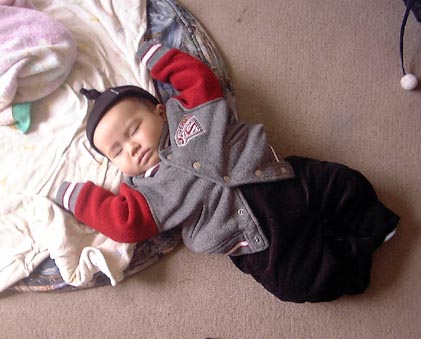 いつもは11時ごろ寝付いたら朝7時か8時までぐーぐーだったのに、3時間ごとに寝ぼけて声をだすのだ。居間にいって見てみると、目を閉じたままうなっている。やっぱこれくらいになると睡眠のリズムが深くなったり浅くなったりして目が覚めるようになるんだよね、、、。日南子の時とおんなじだ。まだおっぱいのませるとすぐ眠るからいいけど。久々に明け方に外人がやってる通信販売のテレビ番組なんて見ちゃったよ。本格的夜泣きにならないといいけどなあ、、、。でもいままでほんとよく寝てくれて助かったから感謝しなきゃねえ。というわけで何度も居間に起きていくのが面倒なので、ついに裕月のベビーベッドを私たちの寝室へ移動。家族4人で眠るようになりました。やっぱこうじゃなきゃ(しかし寝室はもうベッドで溢れかえり、足の踏み場がない)。