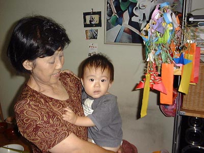 みんなで七夕の飾りつけをした。しかし!私はもう折り紙は鶴しか折れないことが判明。どんなに思い出そうとしてもやっこさんやかえるやヨットは思い出せなかった。おばあちゃんはわすれたといいながらも試行錯誤しながらちゃんとやっこさんやヨットを折り上げていた。すごい!日南子も裕月もすごく気に入って大喜びであった。