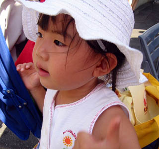 羽田に到着して、横浜方面に向かう高速バスがあと5分で発車なのを知る。あわてて子供を各々抱えて空港内を全速力でダッシュ。表に出るとやはりまだ暑い!熱気にくらくらしながら駆けずり回る。すんでのところでぎりぎり間に合う。バスは満員で仕方が無いので補助席を降ろして座る。さてここからが問題だ。裕月はもう昼寝してしまったし、日南子は退屈してもぞもぞ動いている。いつ大騒ぎするかハラハラであったが奇跡のように二人は1時間近く静かであった。ほんとよかった。