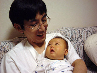 笑い顔も、ここ2、3日はムシ笑いではなく、意志的になってきた。私と目を合わせてにやーっと笑う。ご機嫌な時が多くなってきた。握りこぶしをちぱちゅぱ吸うことが多くなってきた。目で動くものを追うようになってきた。(これも今朝分かった。真基さんが顔を左右にゆっくり動かすと、それに合わせて日南子も顔を動かすのだ。)