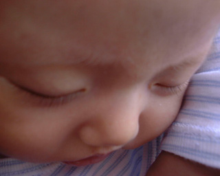 今日は朝から台風の影響で蒸し暑い。9時30分の早めの予約だったので、あまり混雑はしていなかった。身長は3センチ伸びて55.5センチ、体重は丁度1キロ増えて5220グラム、頭囲と胸囲は2センチ増えて38センチになった。首のすわりも、かなりしっかりしてきたとのこと。(常に抱っこしてたのが幸いしたか。この月齢にしては早いそうです。よかった。)ただ、まだ黄疸が残ってるので半月後にまだひかないようなら、小児科外来で血液検査するようにお医者さんから言われた。目の周りとかあごは白くなってきてたので、大丈夫だと思ってたんだけど、お医者さんが心配してるのは白目の部分だそうだ。確かにまだ黄色い。でも、手足もよく動かして元気だし、体重もちゃんと増えてるし、尿も便も異常ないし、まあ心配することはないでしょうとのこと。早く黄疸消えてほしいなあ。