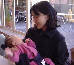 途中、休憩にカフェに入る。なんかアメリカンっぽい雰囲気のカフェで、頼んだチョコレートワッフルのすごさにびっくりする。でも店内は明るくて開放的でくつろげた。(赤ちゃん連れのグループやら犬連れやらいろんなお客さんがいた。)日南子の授乳時間が近づいてきたので、早々に帰宅。風があってちょっと寒かったが楽しいお出かけだった。