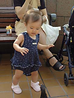 表を歩かせて分かったのだが、結構長い距離を歩けるのだ。15メートルくらいなら、てけてけなんとか歩く。バランスを失っても、尻餅ついたり、手をついたりしてすぐ再び立ち上がり、歩きだす。日南子は歩くのが大好きなようだ。ガーデンプレイスの広場を歩かせていると、知らない夫婦がカメラで日南子を撮っていた。撮った写真欲しいなあ、、、と思ったが、夫婦は「ばいばい」と日南子に手をふっていってしまった。