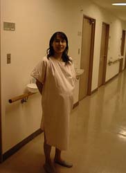 看護婦さんがときどき来て、お腹の音を聞きにくる。赤ちゃんはまだかなり上の方にいるので、寝ているよりも歩いたり、座ったりして、重力の力を借りて下に行くようにした方がいいとのことで、病院内を散歩する。