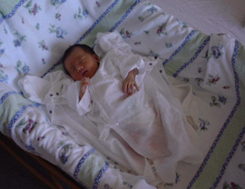 今日はつかれたので早めに休むことに。いまんとこあまり騒がない。静かなうちに名前を考える。一度決めかけたのだが、字画が悪いという意見が一部にあり、再検討。原案を一部修正して、これで行こう、ということに。もう一日寝かして検討することにして、今日は寝る。3時過ぎに泣きだす。あやしても、授乳しても泣き止まず。でも想像したよりもいまんとこ大丈夫。やはりあまり騒がない子のようだ。